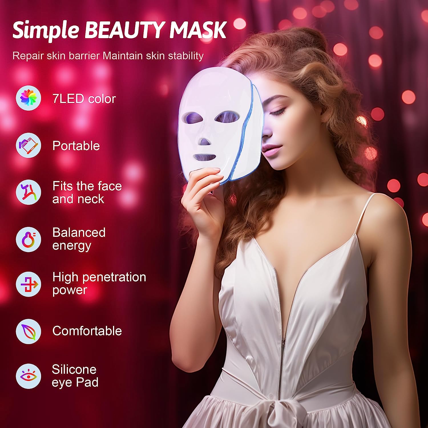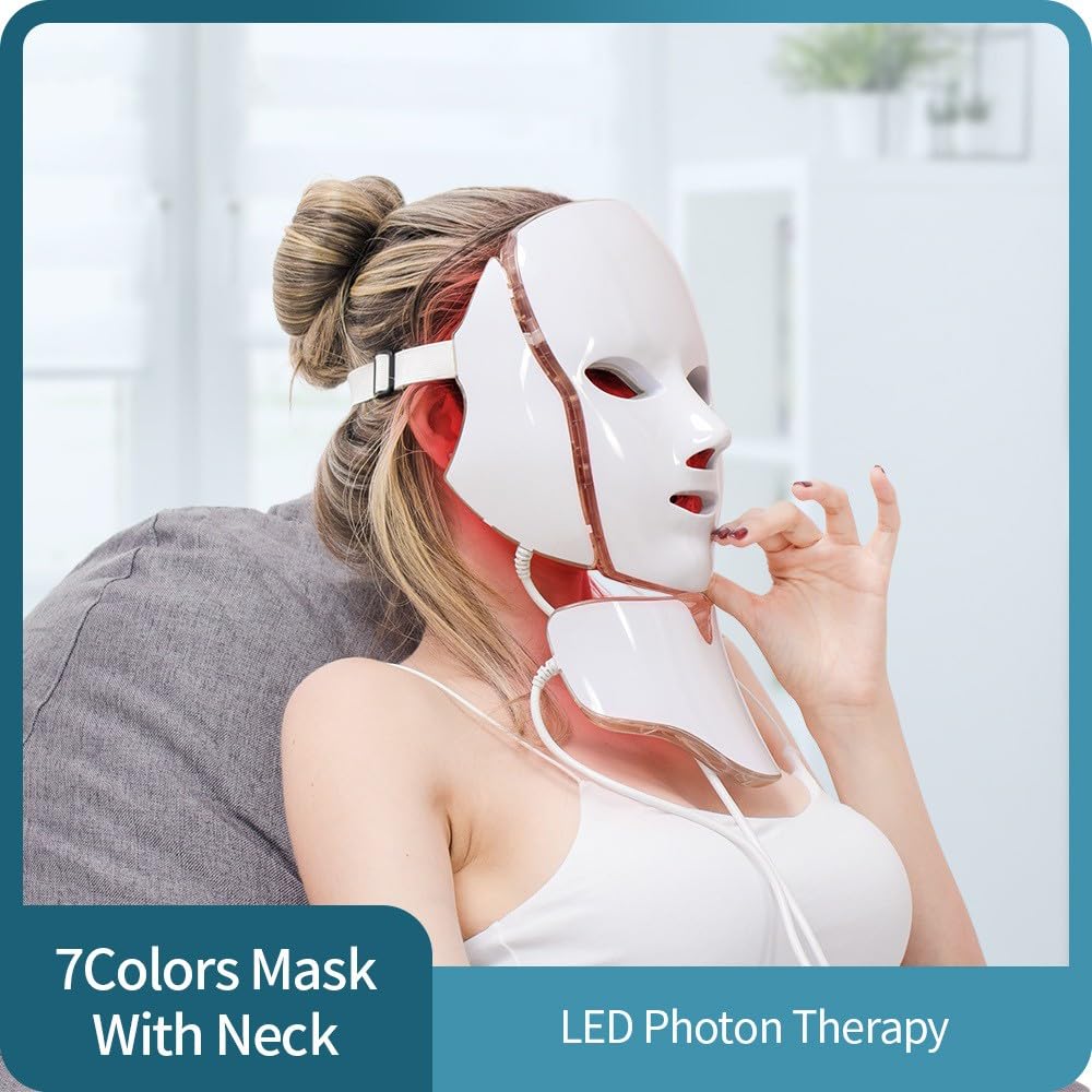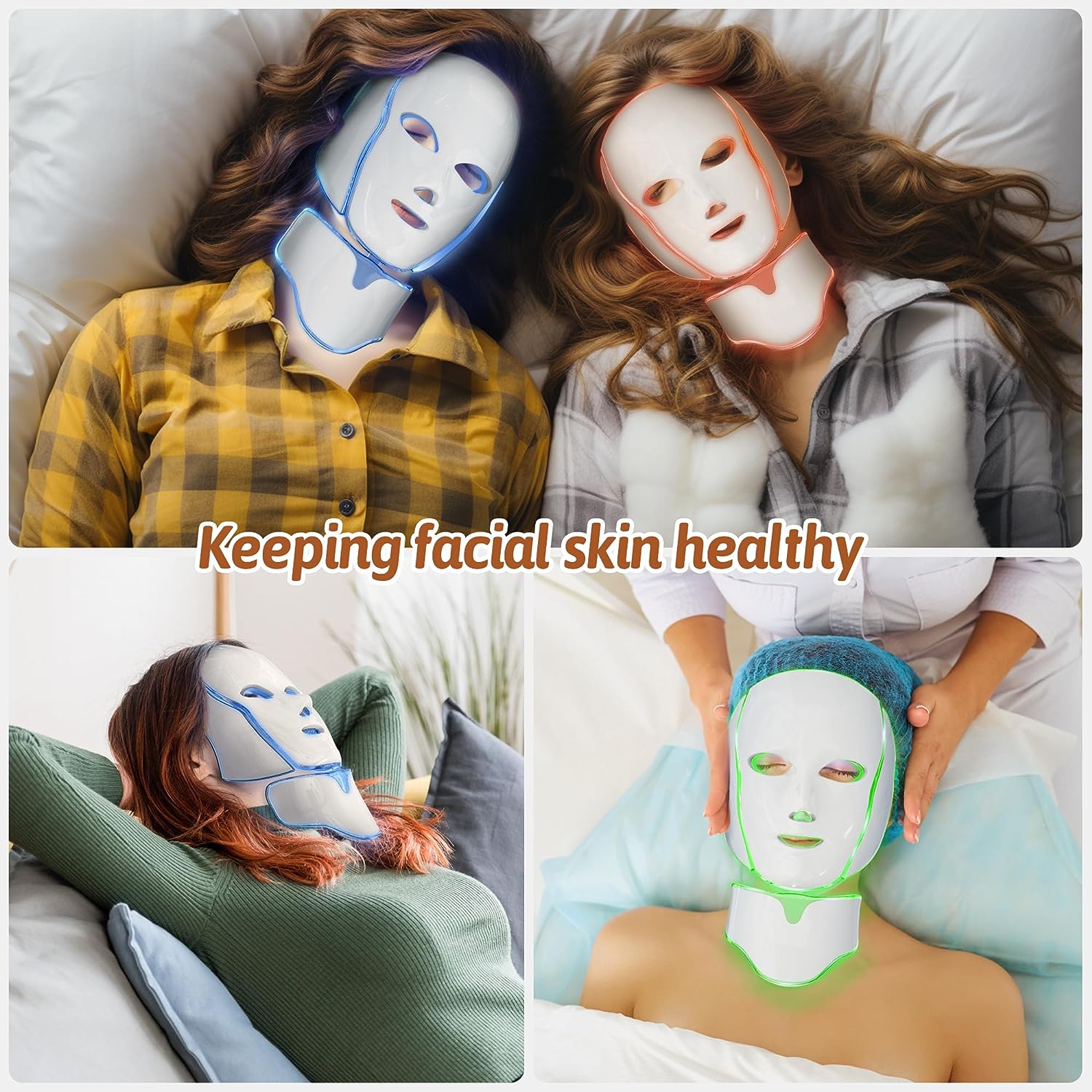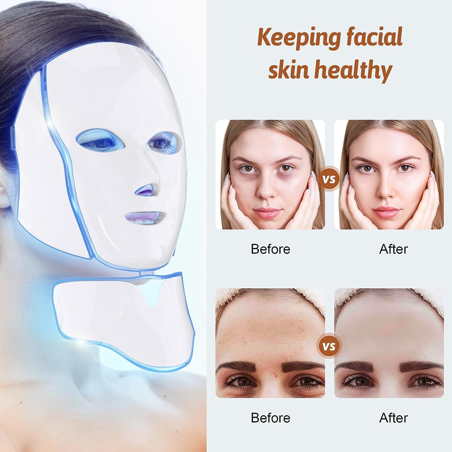 Led Face Mask Light Therapy - 7 Color Photon Blue & Red Light Maintenance Skin Rejuvenation Facial Skin Care Mask, Home Skin Care Mask for Face and Neck