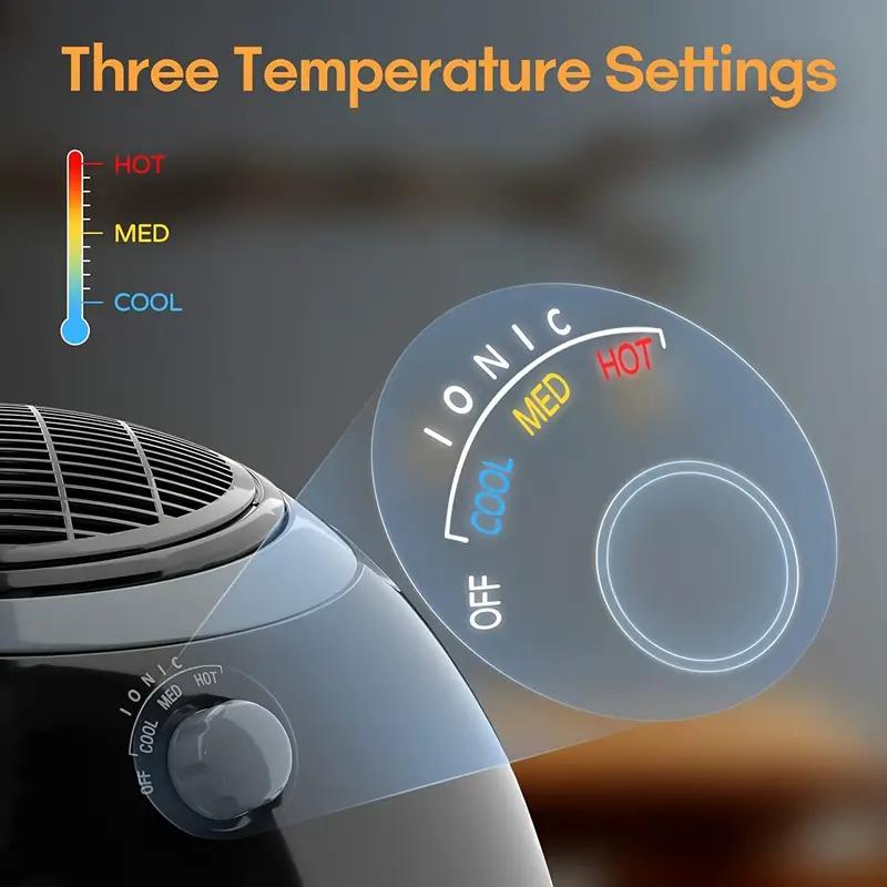 - Compact Design: The hair dryer is collapsible for easy storage and portable with a built-in carry handle. There are also two storage compartments for styling accessories on the base
